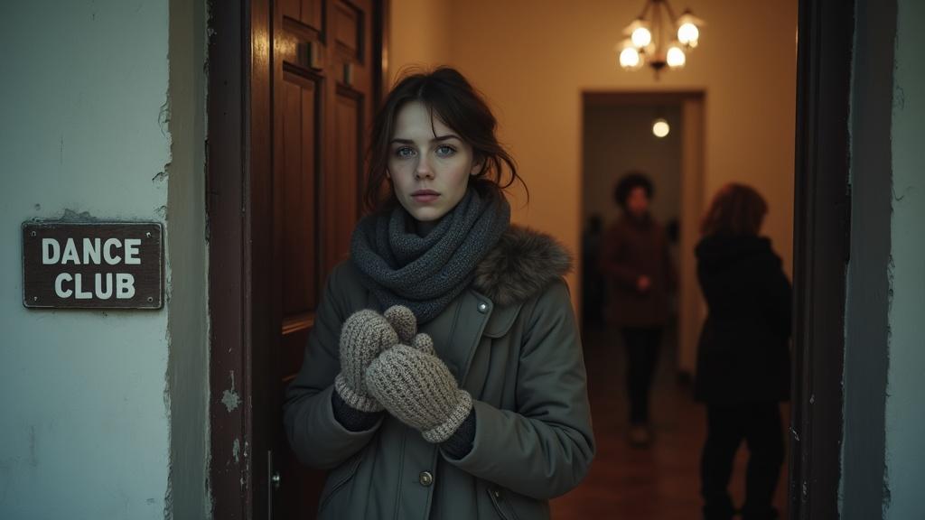 Она колебалась, переводя взгляд с потёртой таблички «Танцевальный кружок» на свои ботинки, на носках которых проступали белёсые следы соли.