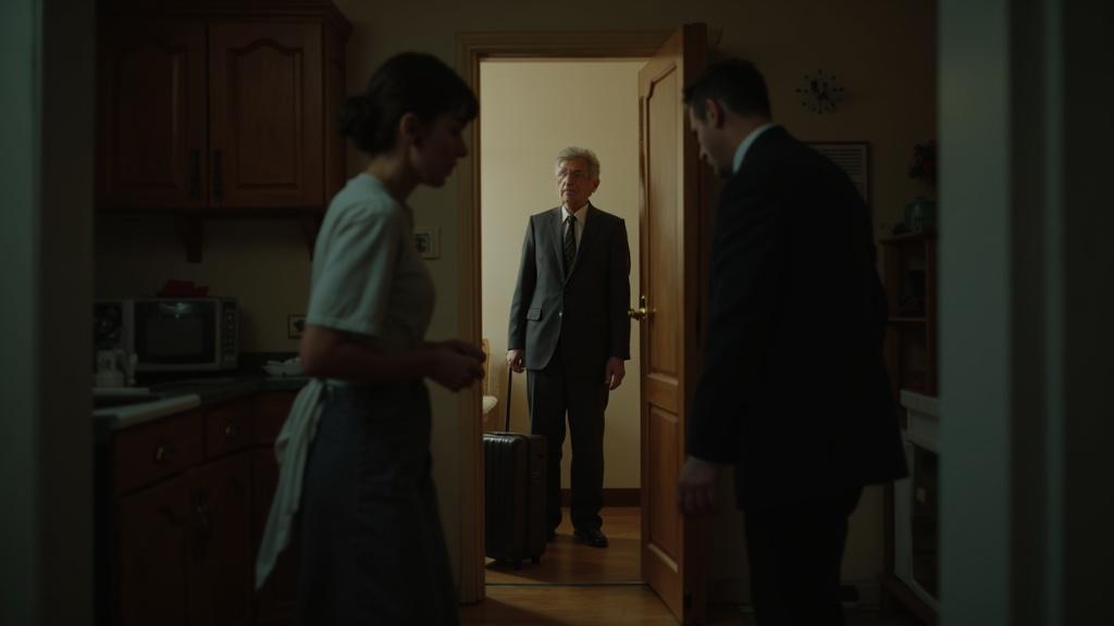 Дмитрий стоял в дверях их небольшой двухкомнатной хрущевки, одетый в новый костюм, а у ног лежал чемодан.