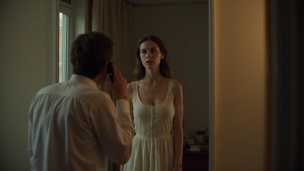 После звонка настроение девушки резко изменилось: лёгкая радость сменилась тревожным предчувствием. Остап выглядел растерянным и виноватым одновременно — словно нёс тяжёлую ношу. В его взгляде читалось внутреннее противоречие: с одной стороны — работа и долг; с другой — вечер рядом с женой, которого она так ждала.