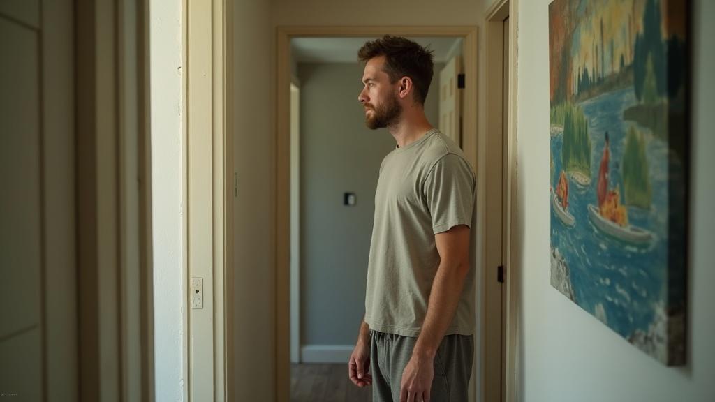 Одна из таких стен стала для него окном в иную реальность — одновременно манящей и пугающей. Цвета на ней сочетались так гармонично, что успокаивали взгляд, но возникающий силуэт вызывал щемящую боль в груди.