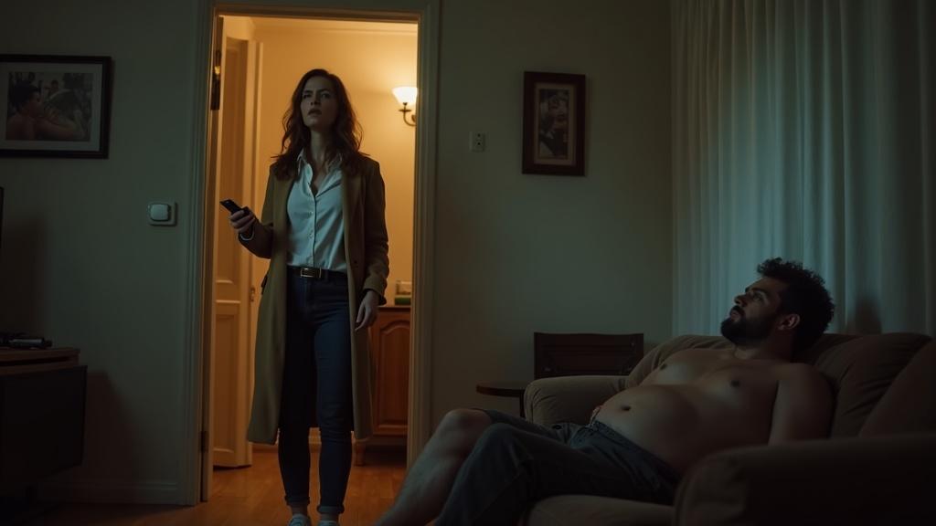 Голос Юлии, чёткий и деловой, донёсся из прихожей, но утонул в звуках громкой перестрелки с экрана телевизора. Она стояла у двери полностью готовая: строгие джинсы, свежевыглаженная белая блузка и лёгкое пальто цвета песка небрежно накинуто на плечи. Сумка висела на плече, в руке она держала смартфон. Весь её вид говорил о собранности и решимости. Она была как натянутая струна — достаточно было одного касания, чтобы привести её в движение.