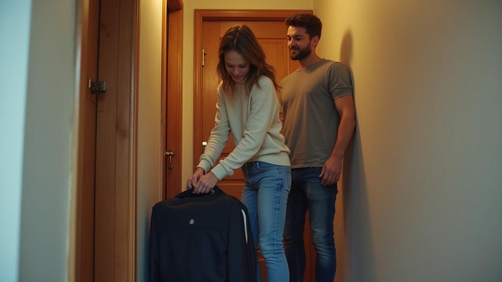 В прихожей стояла вместительная дорожная сумка, и Оксана, склонившись над ней, пыталась уложить внутрь теплый мужской костюм. Богдан наблюдал за её действиями с лёгкой усмешкой.