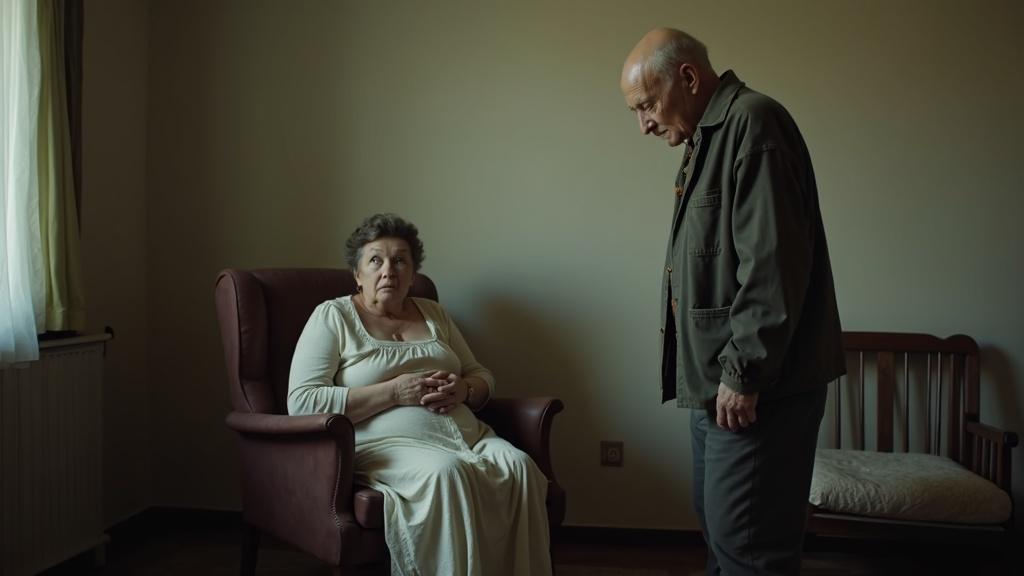 Любомир, человек немногословный и измученный годами ухода, превратился в тень жены — сиделку и исполнителя всех прихотей.
