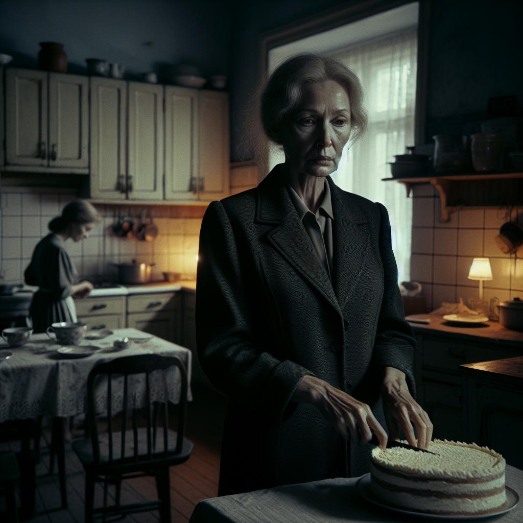 Свекровь аккуратно нарезала торт, словно разделяя остатки своего влияния. Однако тарелки так и остались пустыми — стулья вокруг стола были безлюдны. Впервые ей довелось отведать десерт в полной тишине.