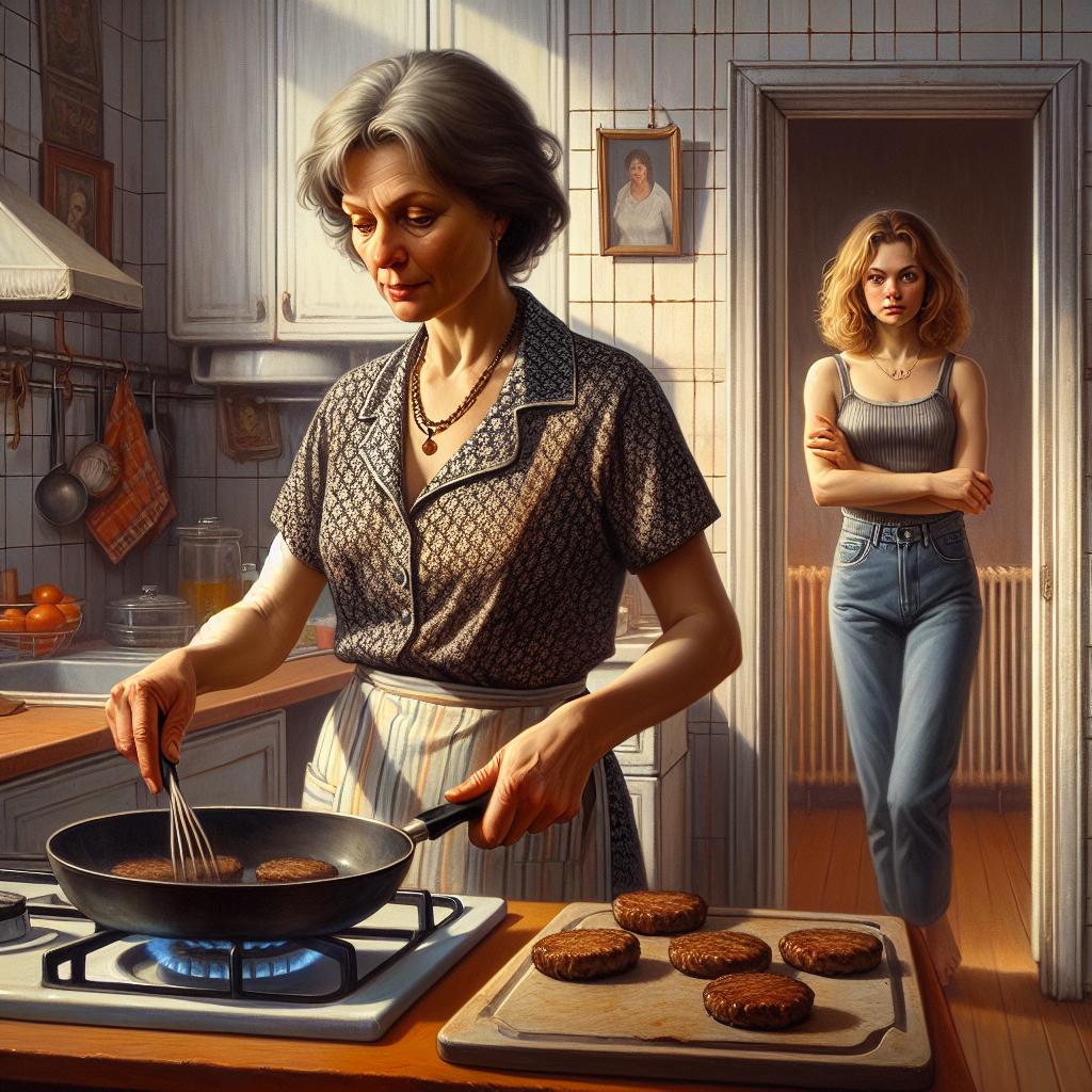 — Чего застыла? Иди, занимайся своими котлетами, — раздражённо бросила девушка, обернувшись от входной двери.
