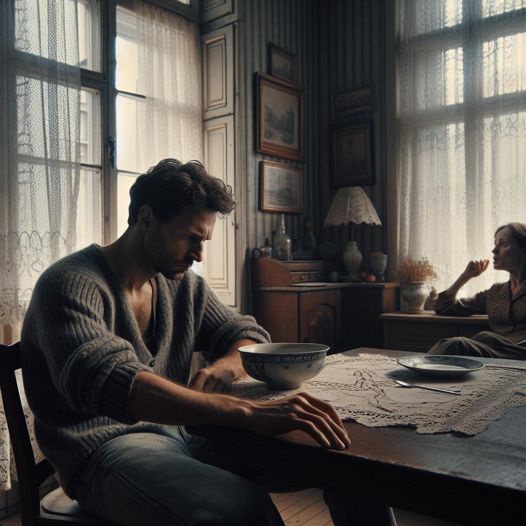 Он отодвинул тарелку с супом и усталым взглядом посмотрел на жену.