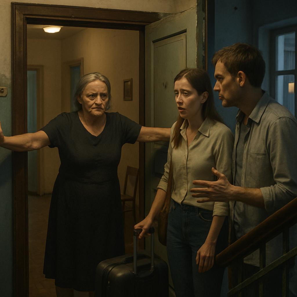 Мария стояла на лестничной площадке с чемоданом, не веря происходящему. Рядом застыл её муж Ростислав, лицо которого побледнело от неожиданности. Они только что вернулись из свадебного путешествия, проведённого в Турции, и вот такая встреча.