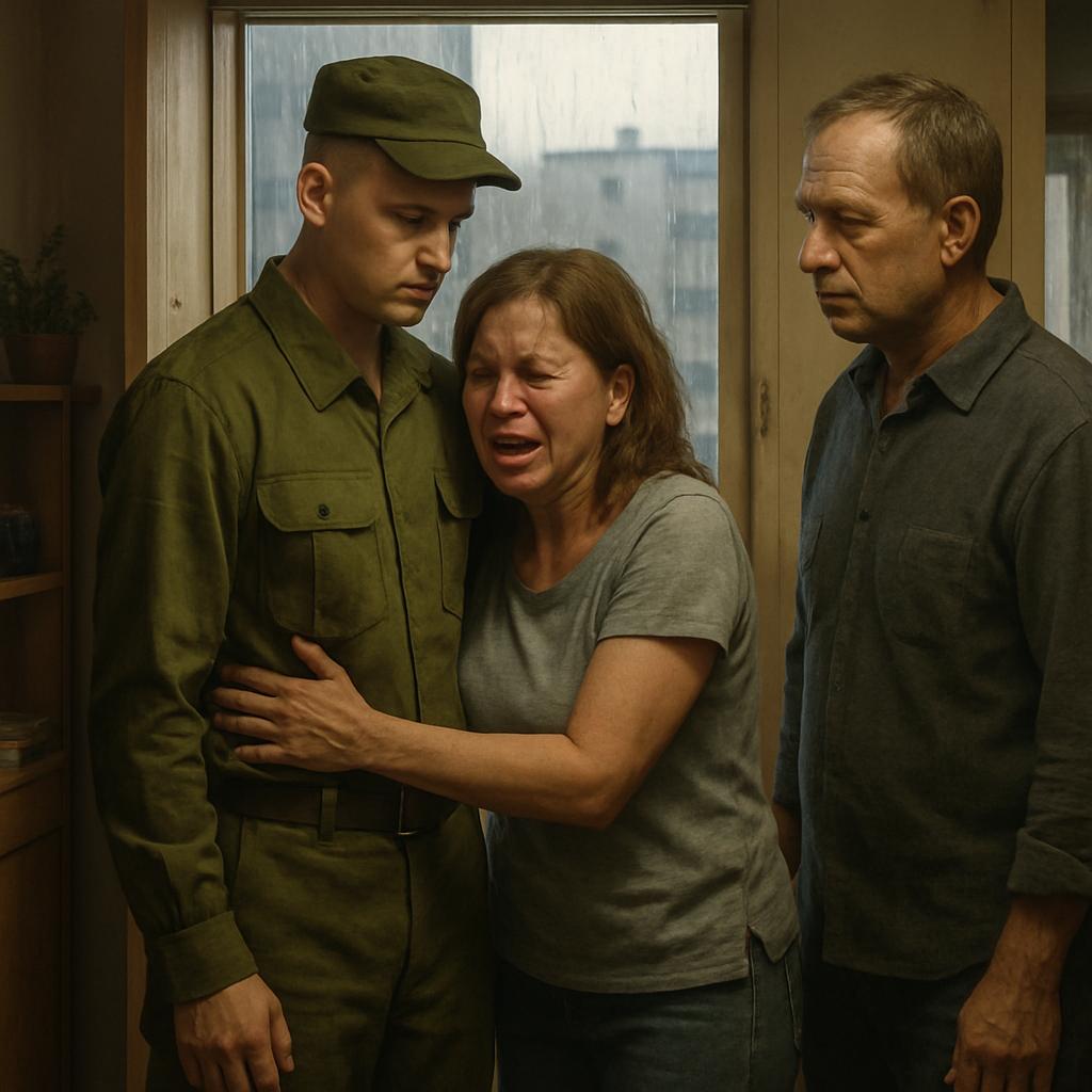 Провожали всем семейством и целым двором. Дмитрий, с коротко остриженной головой, будто стал другим человеком; мать рыдала навзрыд, отец выглядел постаревшим за один день, квартира без сына казалась пустой и холодной. А за окном лил дождь стеной — поезд увозил новобранцев прочь.