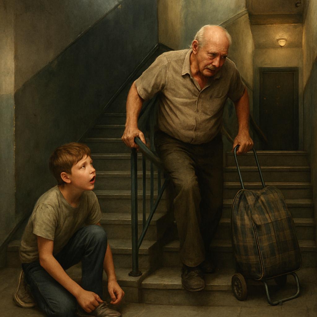 Их знакомство произошло случайно. Богдан возвращался из школы с тяжёлым рюкзаком за спиной. Лифт снова оказался неисправен — уже неделю на двери висело объявление «Не работает». На втором этаже он остановился: развязался шнурок на кроссовке и волочился по ступенькам. Присев, он начал его завязывать. В этот момент снизу послышались шаги — медленные и тяжёлые — и натужный старческий голос: