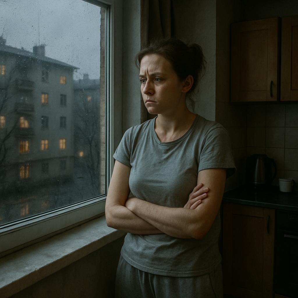 Анастасия стояла у окна, наблюдая, как мелкий дождь размывает огни двора в сумерках. Пальцы всё ещё сохраняли запах медикаментов и пластырей — за целую смену в медпункте она едва ли успела присесть.