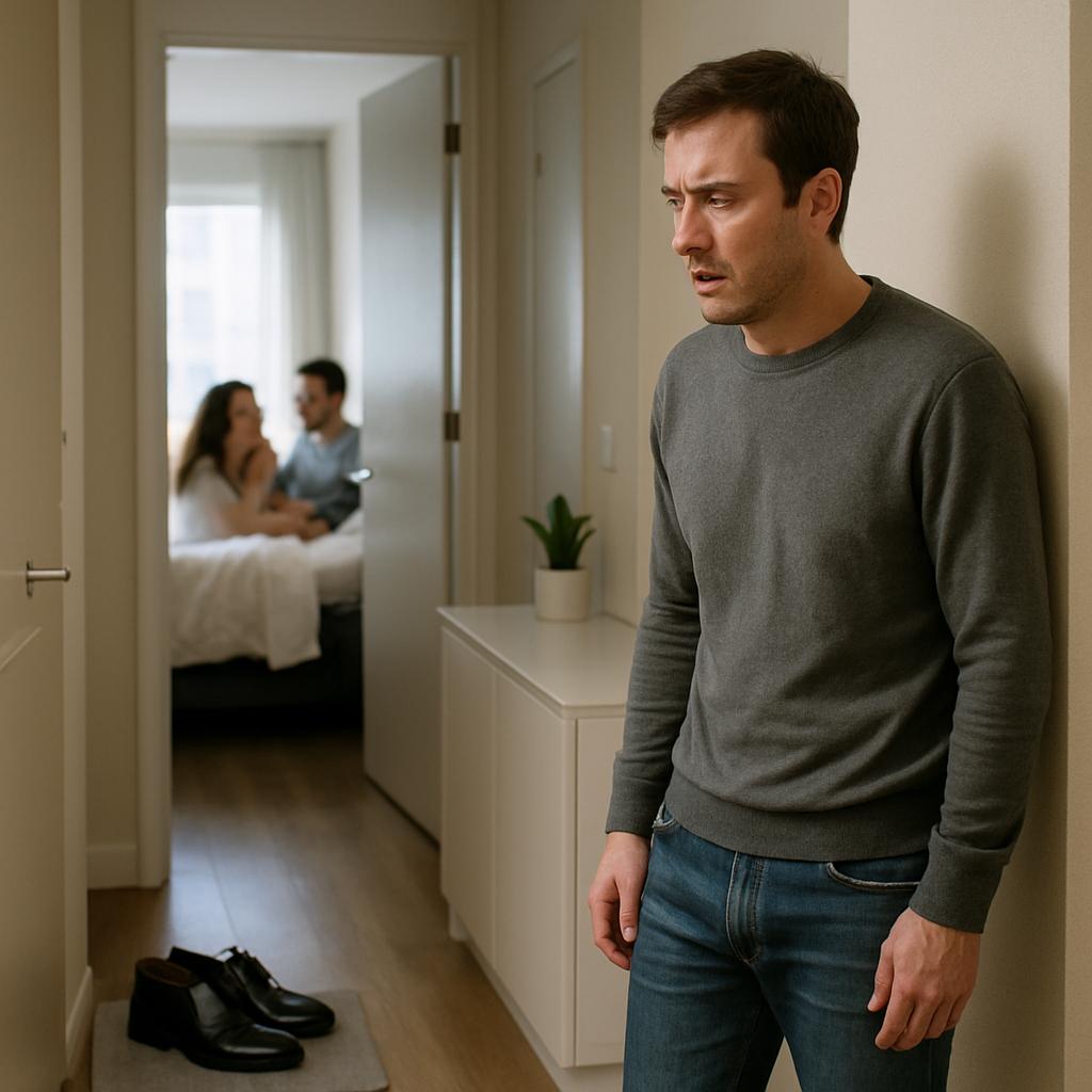 Сердце сжалось. Из спальни доносились голоса: весёлый смех Оксаны и незнакомый низкий мужской голос. Богдан застыл у входа, не в силах пошевелиться. Казалось, ноги приросли к полу.