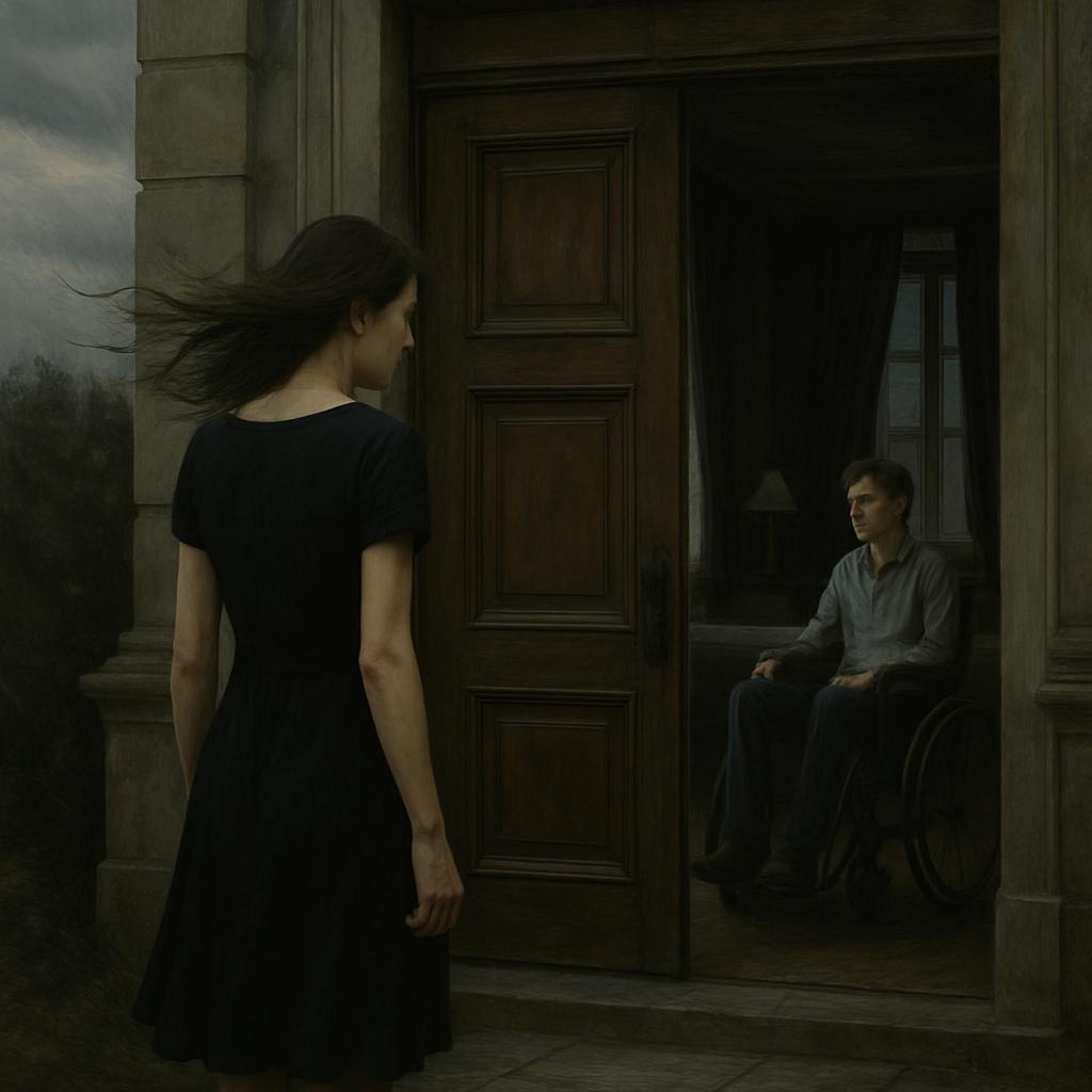 Невеста в трауре, облачённая в чёрное, я стояла перед высокими дубовыми дверями особняка Владислав. Пронизывающий ветер хлестал по лицу, будто пытался оттолкнуть меня назад — туда, где ещё оставалась возможность отступить. Но я уже мысленно перешагнула край. Безысходность стала моим свадебным нарядом. Болезнь отца, долги, висящие над нами как дамоклов меч, и это «предложение» от Владислава — выйти замуж за его прикованного к креслу сына, Марко. Это был не союз — это был приговор.