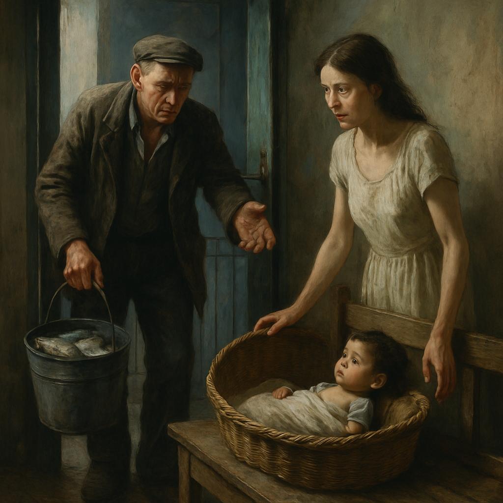 На старенькой скамейке стояла плетёная корзина. Внутри неё, завернутый в выцветшую пелёнку, лежал ребёнок. На вид — около двух лет.