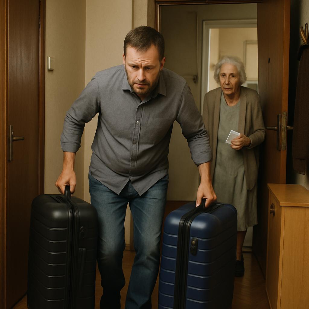 — Мама теперь будет жить с нами, — произнёс Михайло, занося в прихожую два чемодана.