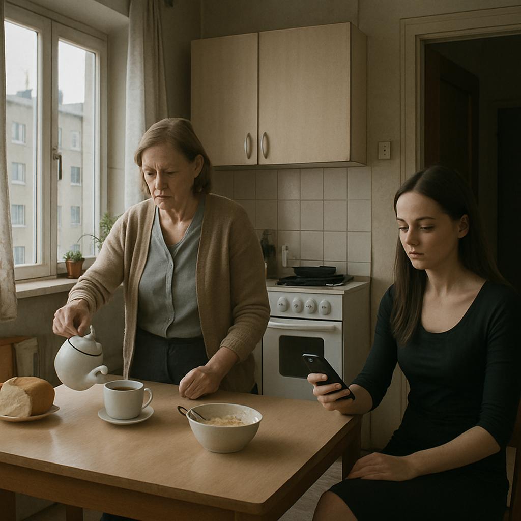 Дочь Александра уже сидела за столом. Уткнулась в телефон, пила кофе.
