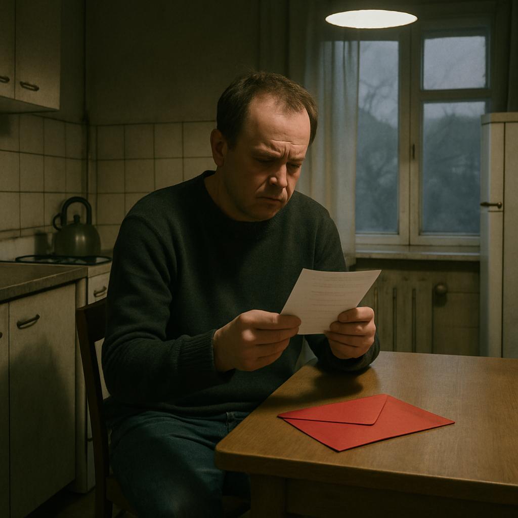 Тарас уже третий час просиживал за кухонным столом, делая вид, что работает за ноутбуком. Однако его взгляд то и дело возвращался к ярко-красному конверту, лежавшему сбоку — словно тревожный сигнал, не дававший покоя. Он снова взял его в руки, провёл пальцами по плотной бумаге и тяжело выдохнул.