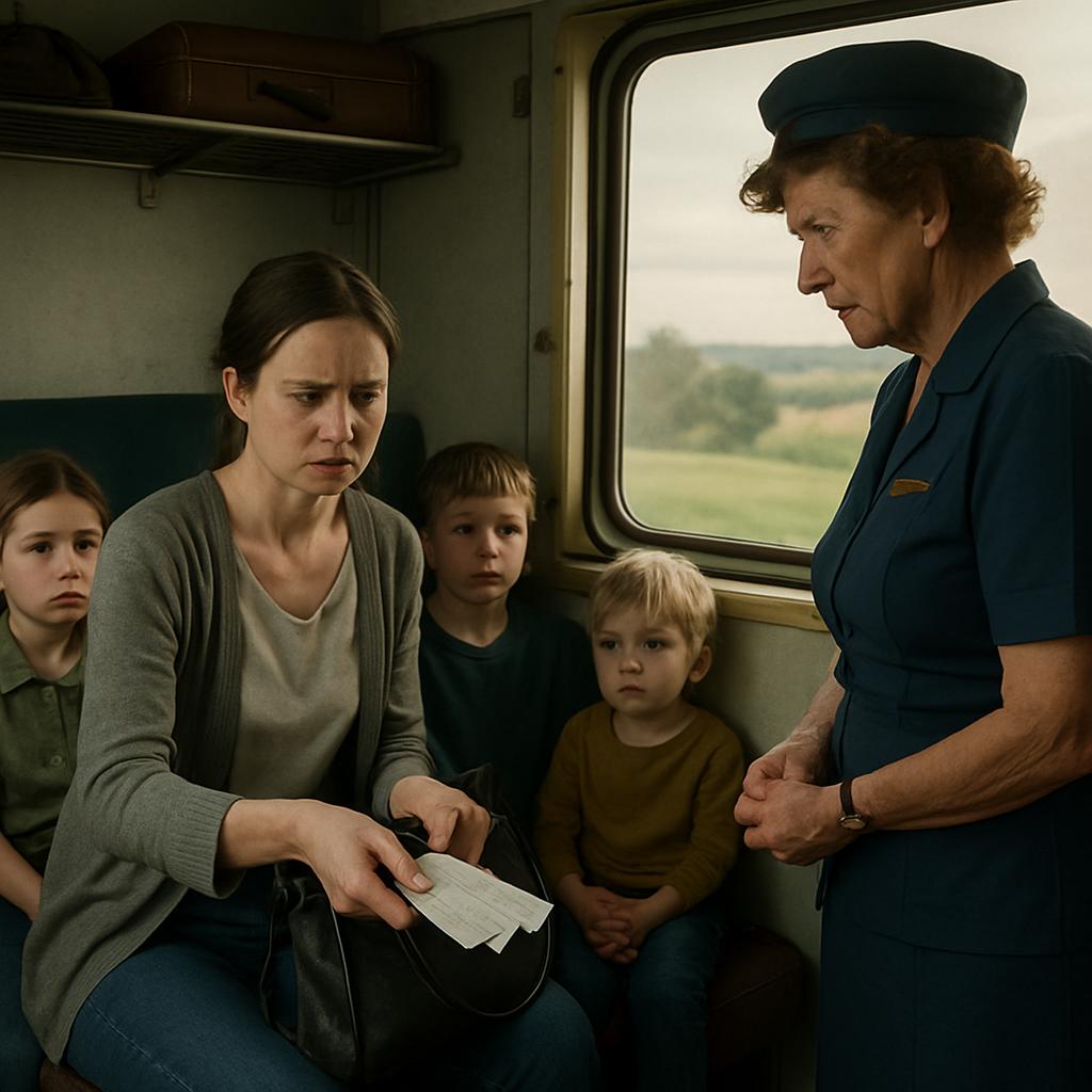 Оксана потянулась к сумке, достала билеты и протянула их женщине. Та уверенно вложила три из них в папку, но, заметив четвёртый, слегка нахмурилась. Быстро сверив данные, она подняла глаза на Оксану — в её взгляде читалось искреннее недоумение.