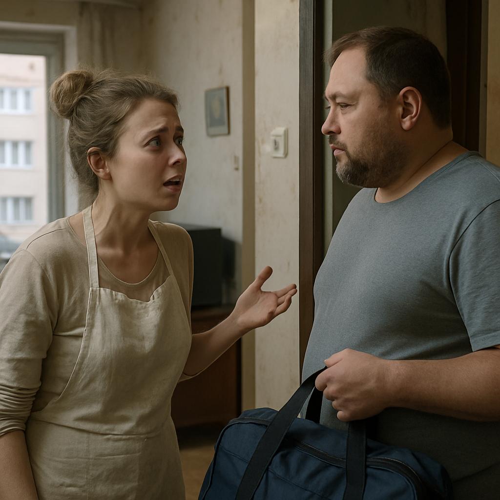 На пороге квартиры стоял плотный мужчина с аккуратной бородкой и начинающей редеть макушкой. В руках он держал спортивную сумку, словно собирался в дальнюю дорогу. Это был порог их общего, но теперь уже прошлого дома. Он смотрел на женщину перед собой с каким-то мягким, почти отеческим сожалением. Перед ним стояла невысокая, слегка полноватая Ганна в светлом переднике, испачканном мукой, с растрёпанным пучком на голове.
