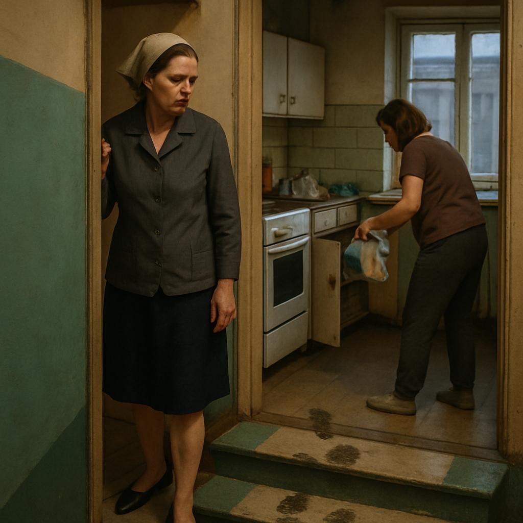 Lyudmyla осторожно двинулась по коридору, стараясь идти неслышно, хотя сердце стучало как барабан. На кухне у открытого холодильника стояла Oksana — двоюродная сестра мужа. В руках у неё была трёхлитровая банка с домашней тушёнкой; рядом на столе лежал пакет замороженной клубники.