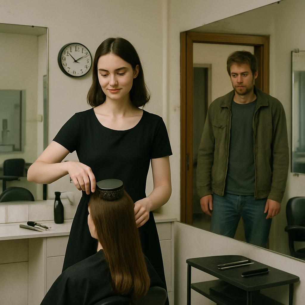 Она продолжала приводить в порядок рабочее место: ножницы убрала в футляр, расчёски опустила в дезинфектор. Всё делалось на автомате — привычными движениями.
