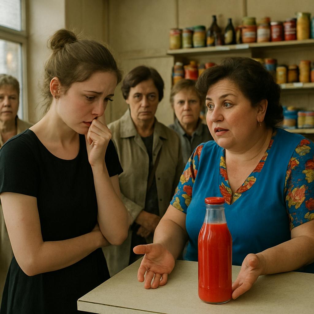 Оксана взяла баночку томатной пасты, прижала к груди и направилась к выходу сквозь молчаливые взгляды окружающих женщин. Она словно парила над землёй от радости.
