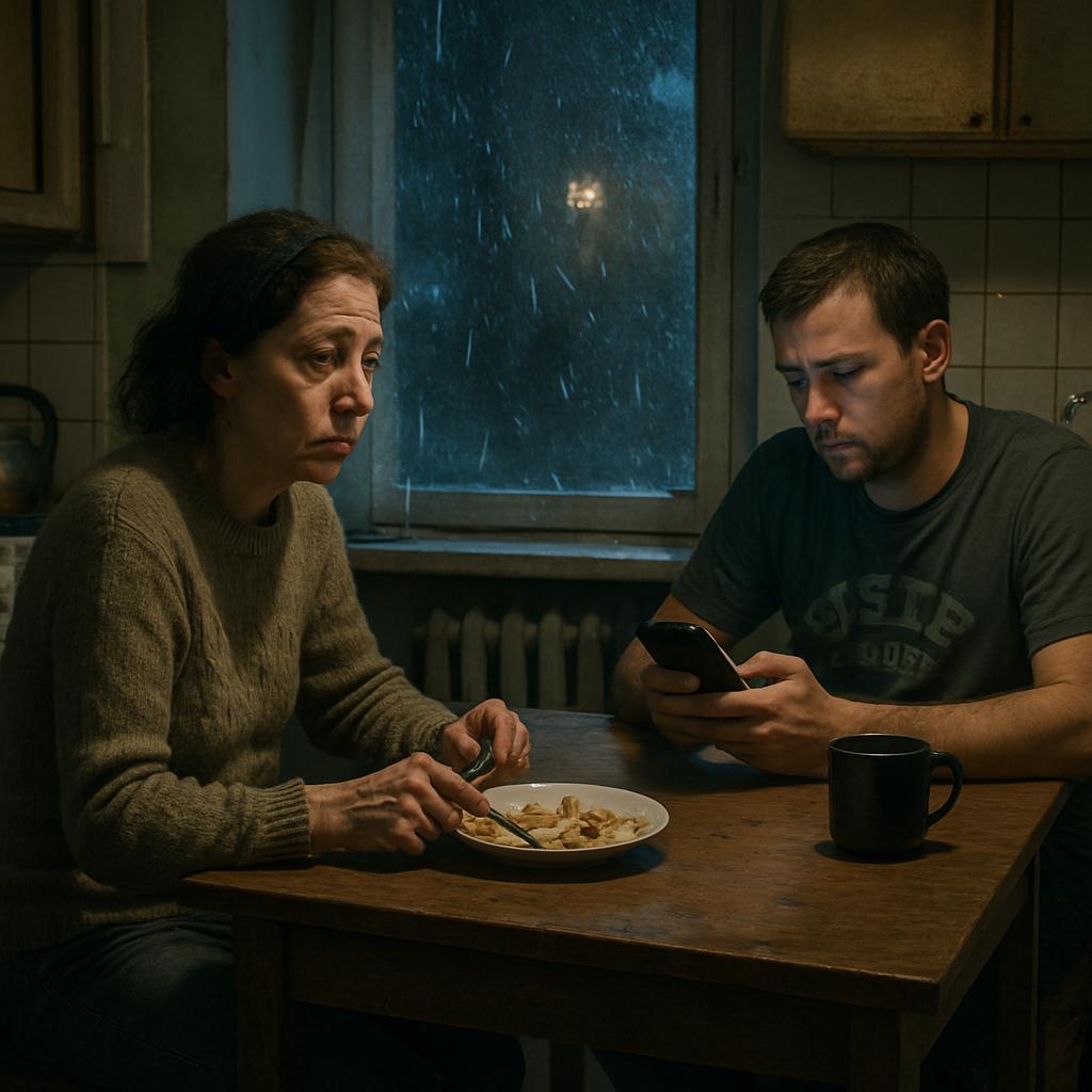 Богдан с демонстративной неторопливостью отодвинул тарелку, на лице застыло то самое выражение отвращения, которое Таня терпеть не могла уже больше десяти лет. Вилка звякнула о фаянс с неприятным звуком — будто кто-то провёл гвоздём по стеклу. За окном завывал ноябрьский ветер, швыряя в стекло мокрый снег вперемешку с дождём. Хотя на часах было всего шесть вечера, темень стояла такая, словно мир за окном давно исчез.