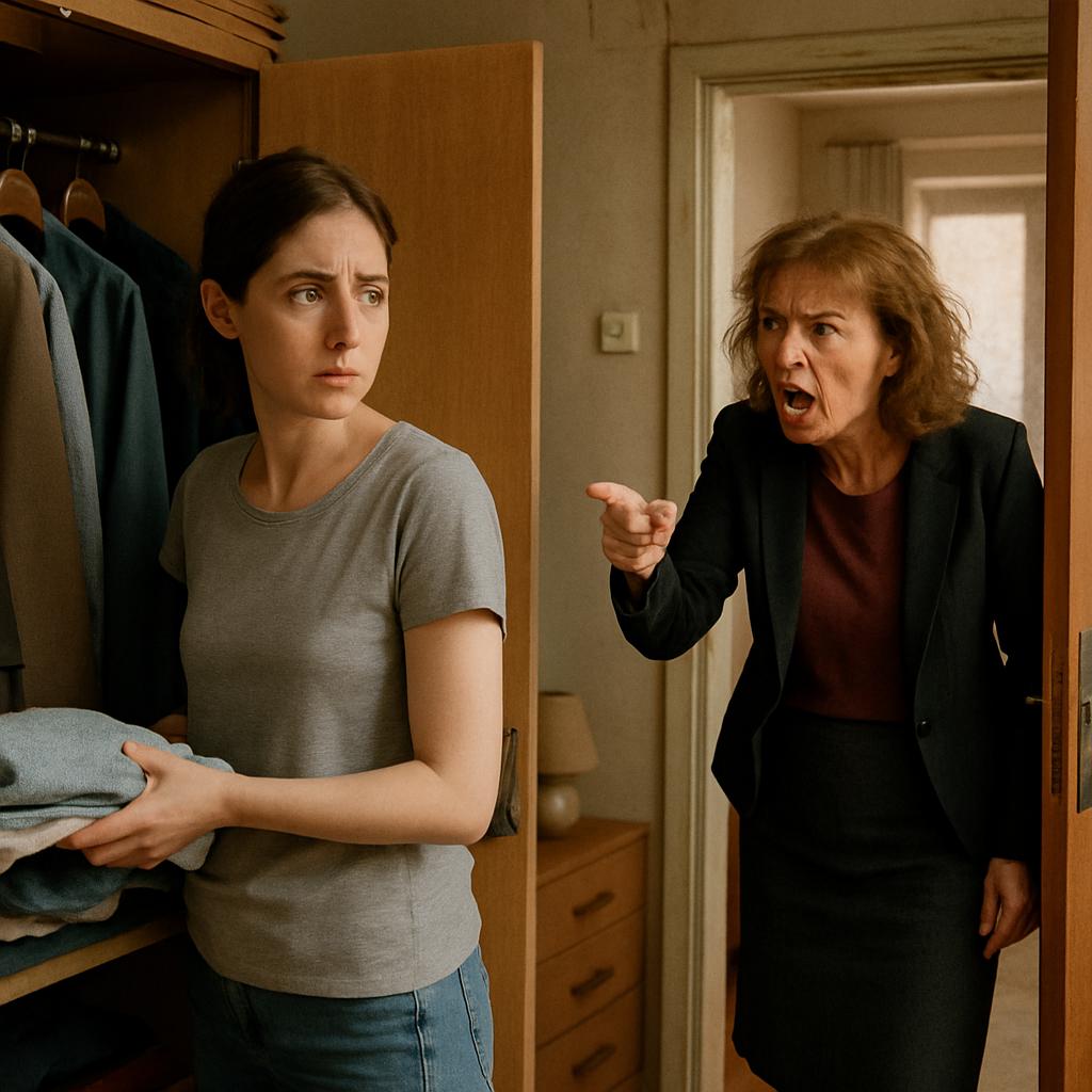 Разбирая бельё в шкафу, Надя вздрогнула от неожиданности — дверь распахнулась, и на пороге, словно застывшая статуя гнева, появилась Ирина. В этот момент свекровь выглядела так, будто вот-вот сорвётся с цепи: даже её аккуратная причёска распалась, и пряди волос торчали в разные стороны.