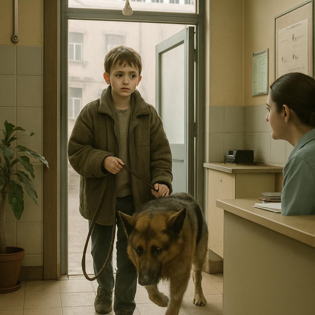 На пороге появляется мальчик. Щуплый, невысокий, куртка висит мешком — рукава почти полностью скрывают ладони. В одной руке у него поводок, а за ним такая собака, что половина моих взрослых клиентов немедленно нашла бы повод удалиться куда-нибудь подальше. Крупная овчарка с густой шерстью и тяжёлой головой. Идёт прихрамывая. Практически не наступает на переднюю лапу — подушечка поднята вверх. Взгляд спокойный и упрямый, но в глубине глаз затаилась та самая боль — тихая и настоящая — которую псы скрывать не умеют.