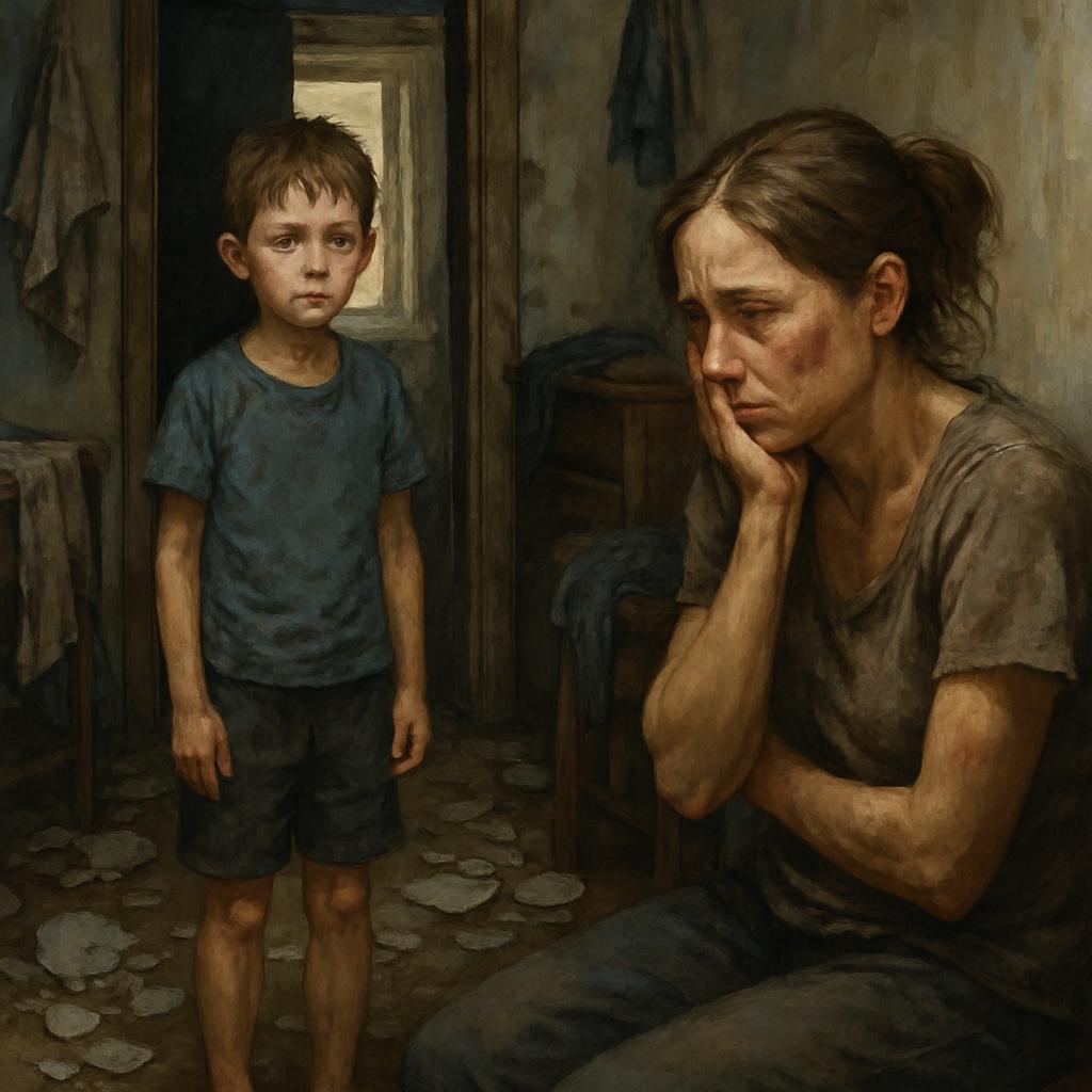 Тарас вернулся из школы и застал маму в слезах. Между родителями часто вспыхивали ссоры, и отец нередко поднимал руку на мать, но она всё сносила молча. «Ребёнок должен расти с отцом», — не раз говорила она своим немногочисленным подругам. Однако сегодня всё выглядело гораздо страшнее: в квартире царил полный беспорядок — повсюду были разбросаны осколки посуды, изорванные вещи и поломанная мебель.
