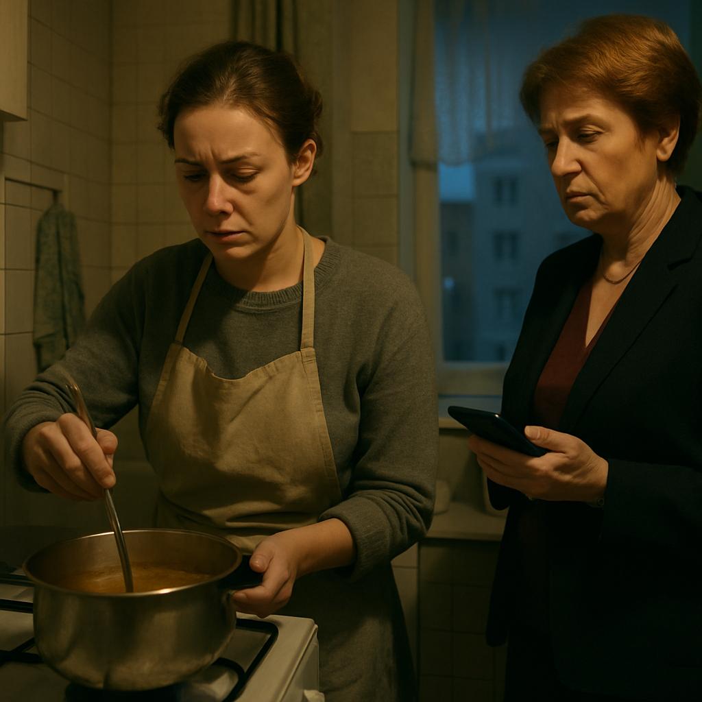 Оксанка молча мешала суп в кастрюле. Ложка равномерно постукивала по стенкам — это движение помогало ей прийти в себя после смены. Двенадцать часов на дежурстве: голос охрипший, спина будто из дерева, а тут уже третий день подряд свекровь названивает и распоряжается. — Лариса, я не смогу приехать — у меня смены выпадают на праздники, — проговорила она негромко. Но та даже не подняла головы.