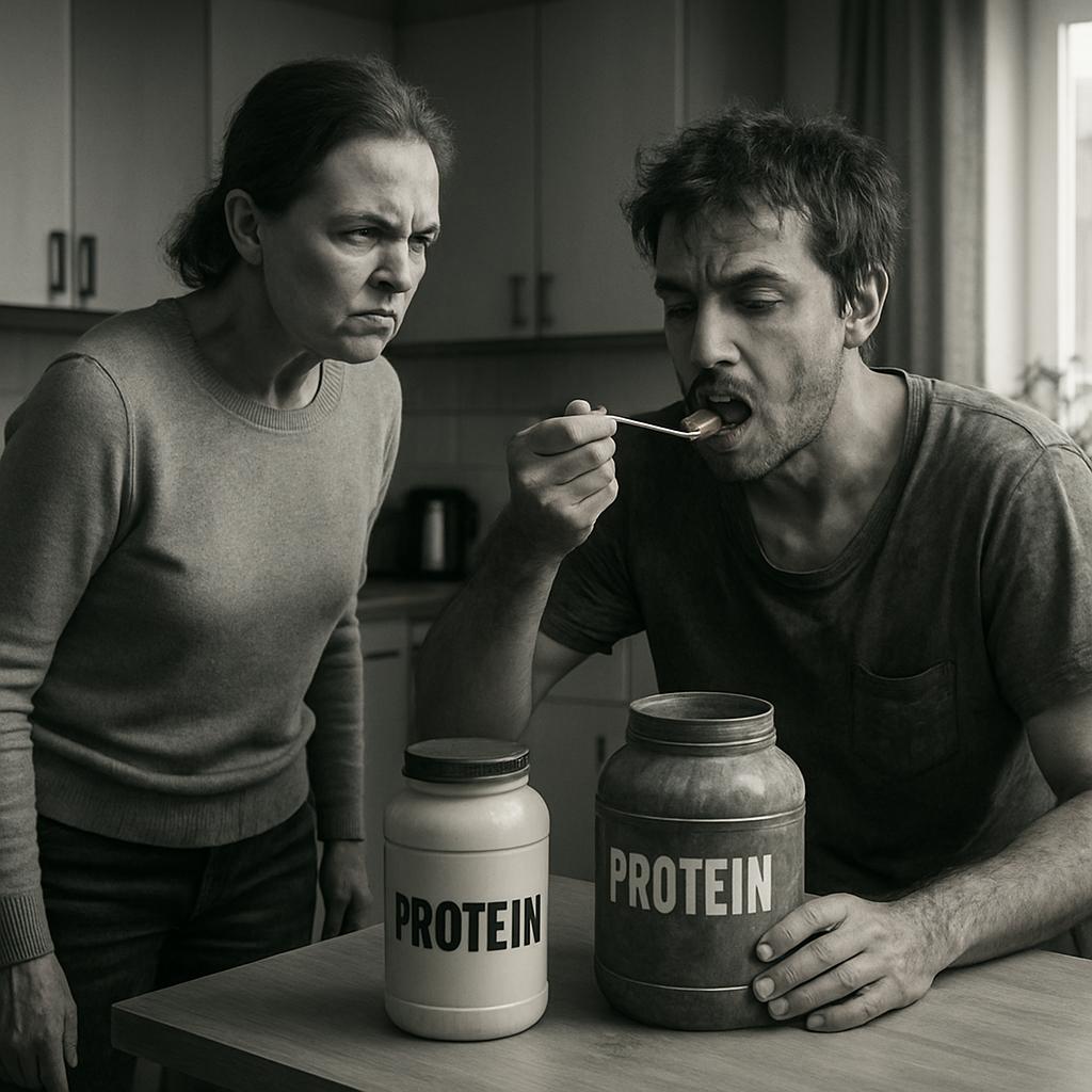 Роман развалился за столом, словно помещик в собственном доме. Перед ним выстроились в ряд баночки с питанием: ванильный белковый мусс, витаминный пудинг, энергетическая смесь. Всё это Оксана покупала на последние деньги, отказывая себе даже в самом необходимом.