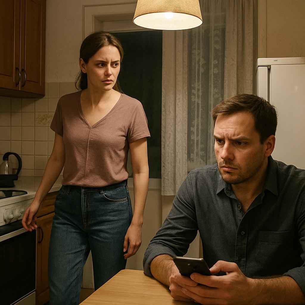 Дарина вернулась домой после утомительного рабочего дня. Максим сидел за кухонным столом, не отрываясь от экрана телефона. Его лицо было напряжённым, брови сдвинуты — явно что-то случилось.