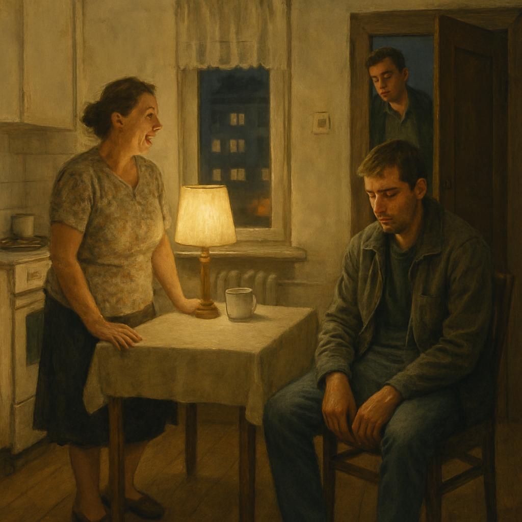 Но тревога уже поселилась в её душе. Раньше Богдан был живым и весёлым парнем с лёгким характером. А теперь сидит у окна и будто чем-то озабочен. Так прошёл вечер. Богдан ушёл спать. А Оксане не давали покоя мысли — сон к ней так и не пришёл. Ночью она тихо вышла на кухню — сын сидел за столом в темноте.