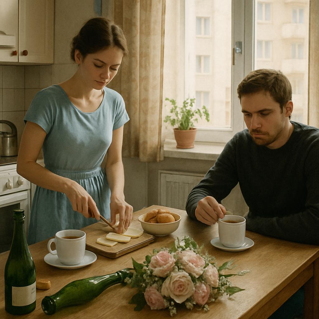 Свадебное торжество прошло всего три дня назад, а в квартире Екатерины всё ещё витал аромат свежих цветов, вперемешку с лёгким запахом шампанского, случайно пролитого на ковёр во время предсвадебной суеты. Екатерина, пока ещё не привыкшая к новой роли супруги, с радостной суетой хлопотала на кухне, нарезая сыр к завтраку. Ей казалось, что теперь вся её жизнь будет похожа на бесконечный праздник — воздушный и светлый, словно фата, которую она аккуратно сложила в коробку и убрала на антресоль.