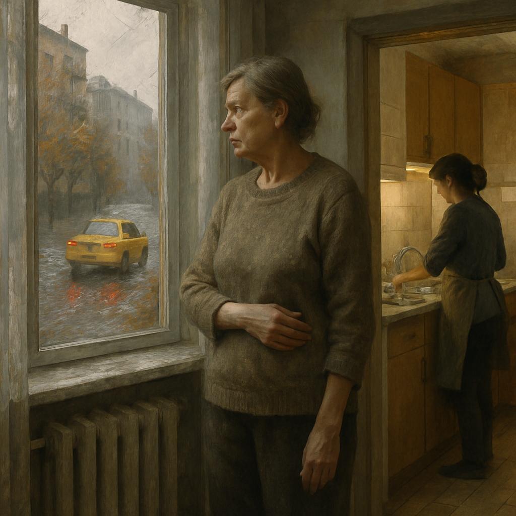 Ганна стояла у окна, наблюдая, как такси с её сыном Ярославом сворачивает за угол, увозя его в аэропорт. За стеклом моросил осенний дождь, стирая очертания двора и будто бы смывая последние следы недавнего прощания. На сердце было неспокойно — не из-за командировки сына, к таким поездкам она уже давно привыкла. Беспокойство исходило из самой квартиры: оттуда доносился звон посуды и какое-то слишком уверенное шуршание.