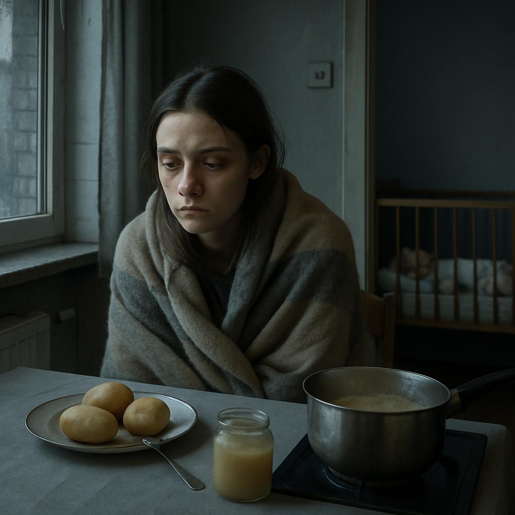 Дождь барабанил по подоконнику старенькой двухкомнатной квартиры на окраине. В воздухе витал запах варёной картошки и детского питания. Оксана, закутавшись в поношенный плед, сидела на кухне, уставившись в одну точку. Ей было двадцать пять, но ощущала она себя глубоко пожилой.