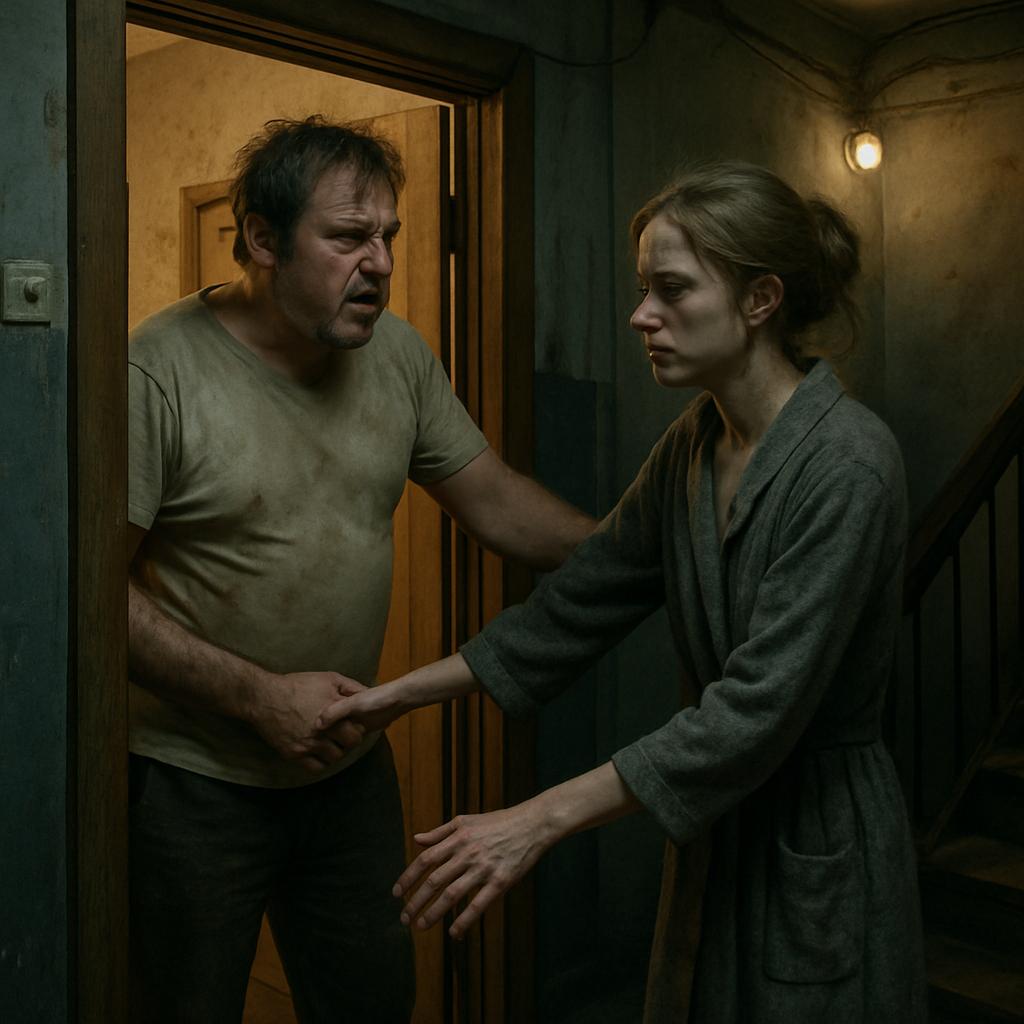 Людмила отступила на площадку. Олег сделал шаг вперёд, глаза метались. — Олег, подожди, я сейчас быстро…