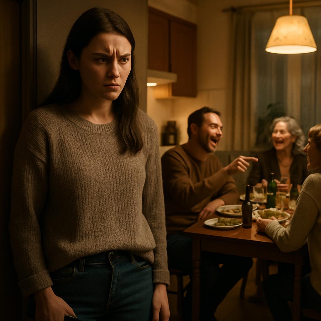 Оксана сидела в углу стола, сжав челюсти. День рождения Светланы собрал всю родню — человек двадцать в тесной квартире Марии. Дмитрий, как всегда, был в центре внимания: рубашка расстёгнута, бокал вина в руке и довольная ухмылка на лице.