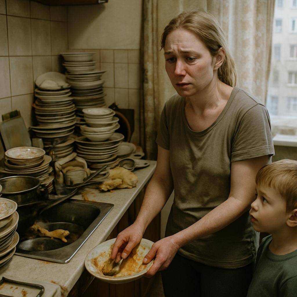 Она стояла посреди кухни. Повсюду грязная посуда — даже слово «гора» звучало бы слишком мягко. Это был настоящий Эверест из тарелок и чашек. Через пару часов должны были приехать деловые партнёры Максима — люди, от которых зависело его повышение. Столовый сервиз, доставшийся ей ещё от бабушки, лежал на дне раковины в жирной пене.