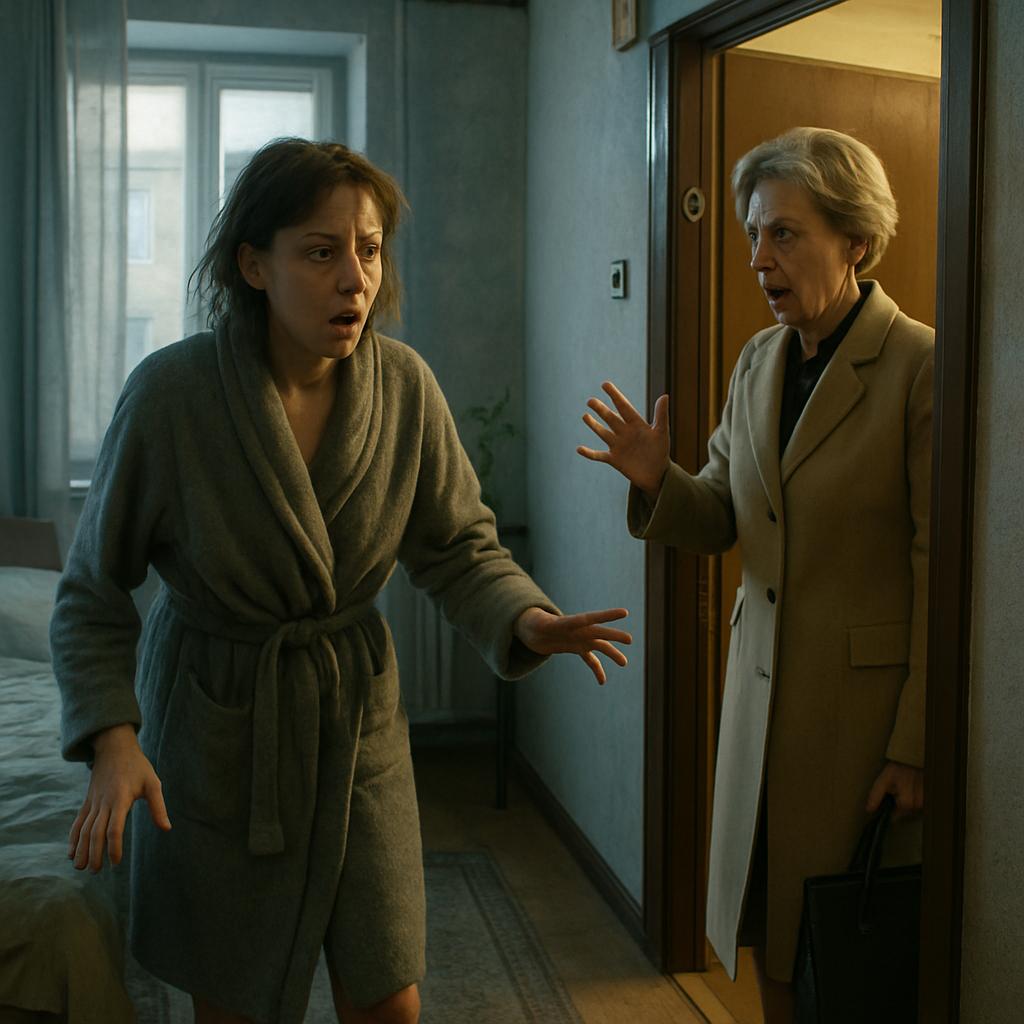 Подойдя к двери, Оксана заглянула в глазок. На лестничной площадке стояла Ганна — её свекровь: причёска уложена до идеала, строгое бежевое пальто сидит безупречно, а сумка в руках стоила столько же, сколько Оксана зарабатывала за месяц. В голове сразу мелькнула тревожная мысль — не случилось ли чего с Максимом? Не раздумывая больше ни секунды, она распахнула дверь.