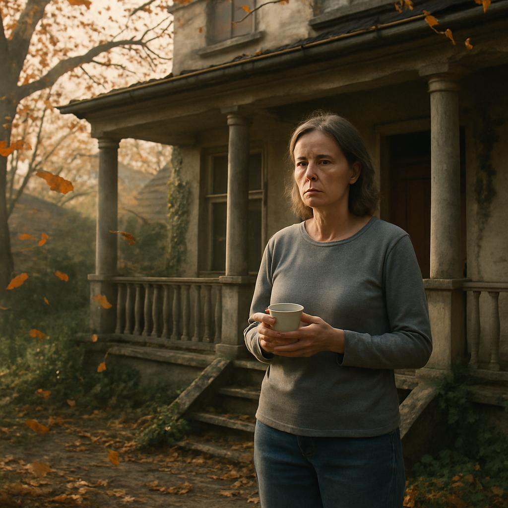 Октябрьский ветер срывал последние листья с яблонь, когда Оксана, держа в руках чашку горячего кофе, вышла на крыльцо. Дом, доставшийся ей от Марфы, стоял на краю посёлка — двухэтажный, с мансардой и уютной верандой, утопающий в зелени сада. В каждом уголке чувствовалось присутствие человека, который когда-то с любовью высаживал деревья, красил забор и собирал родных за большим столом. Оксана перебралась сюда пять лет назад после смерти тёти — та оставила ей дом по завещанию.