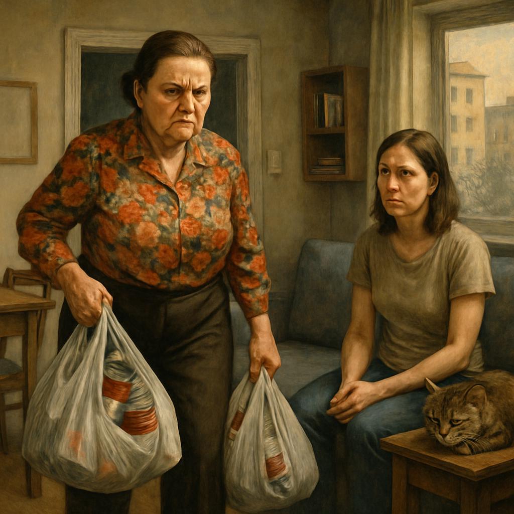 Ганна ворвалась в квартиру сына не как обычная гостья, а словно командующий флотилией, прибывший с инспекцией на захваченный корабль. В руках она несла пакеты с «подарками» — просроченные консервы, купленные по скидке, и неизменное выражение лица, сулящее всем присутствующим неминуемую бурю.