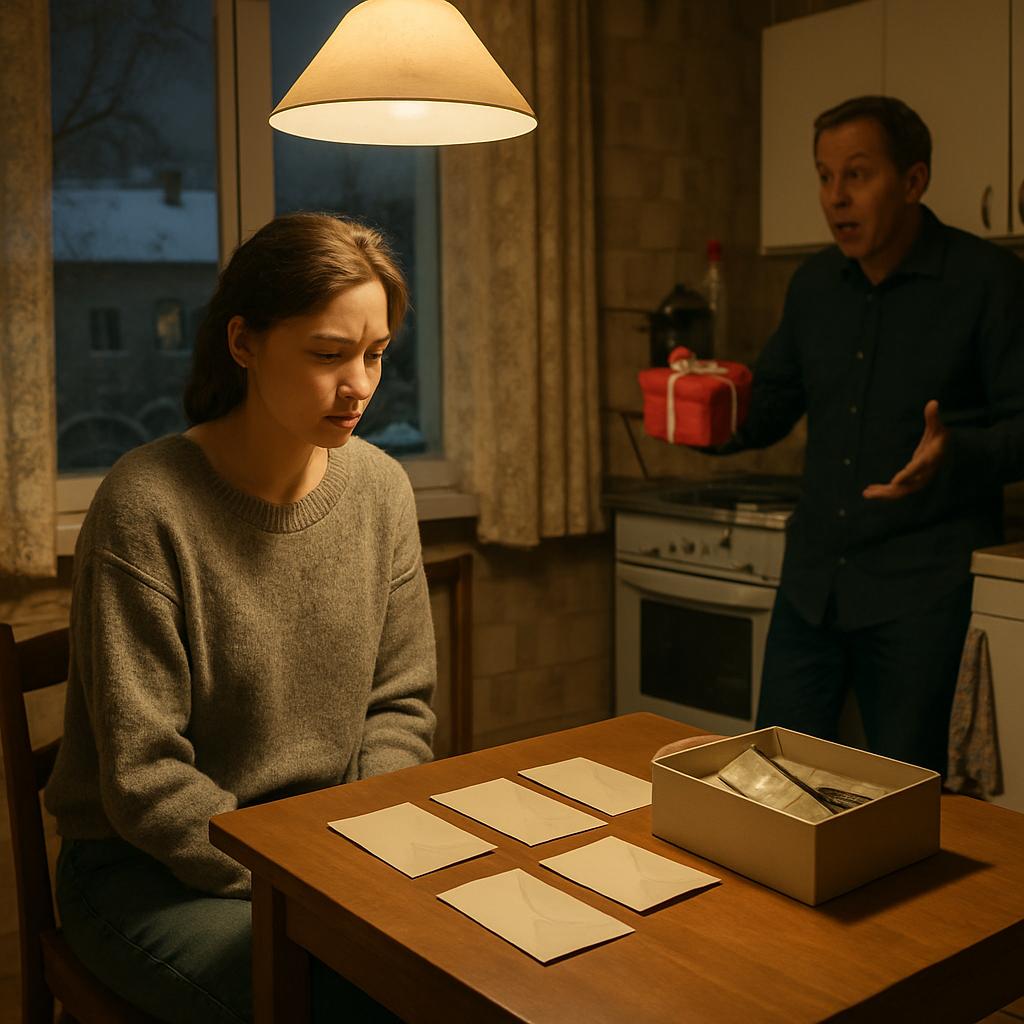 Оксана остановилась прямо у входа на кухню всё ещё держа пакеты в руках… И замерла наблюдая молча как Владислав сосредоточенно перекладывает купюры со стола обратно внутрь коробки… Он считал их губами едва заметно шевеля ими… Складывал аккуратными стопками… Выравнивал края… Будто репетировал важную сцену…