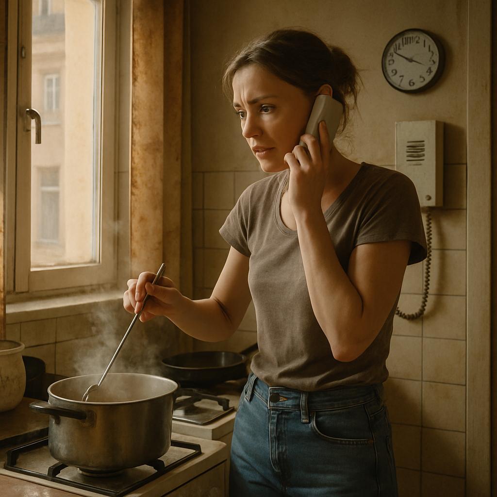На кухне их встретил аромат свежего борща и хлеба из пекарни. Оксана достала глубокую тарелку и налила густого супа с мясом и овощами. Отрезала ломоть чёрного хлеба и положила ложку сметаны сверху.