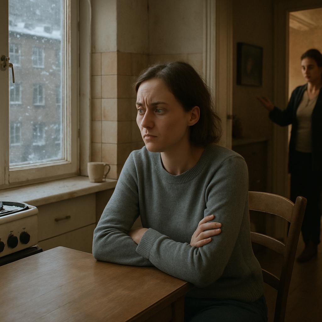 Ганна сидела на кухне, глядя в окно, за которым медленно кружились первые снежинки. Декабрь только вступил в свои права, а усталость от прошедшего года уже ощущалась во всём теле. Последние месяцы превратились в непрекращающуюся череду намёков, ссор и откровенных требований.