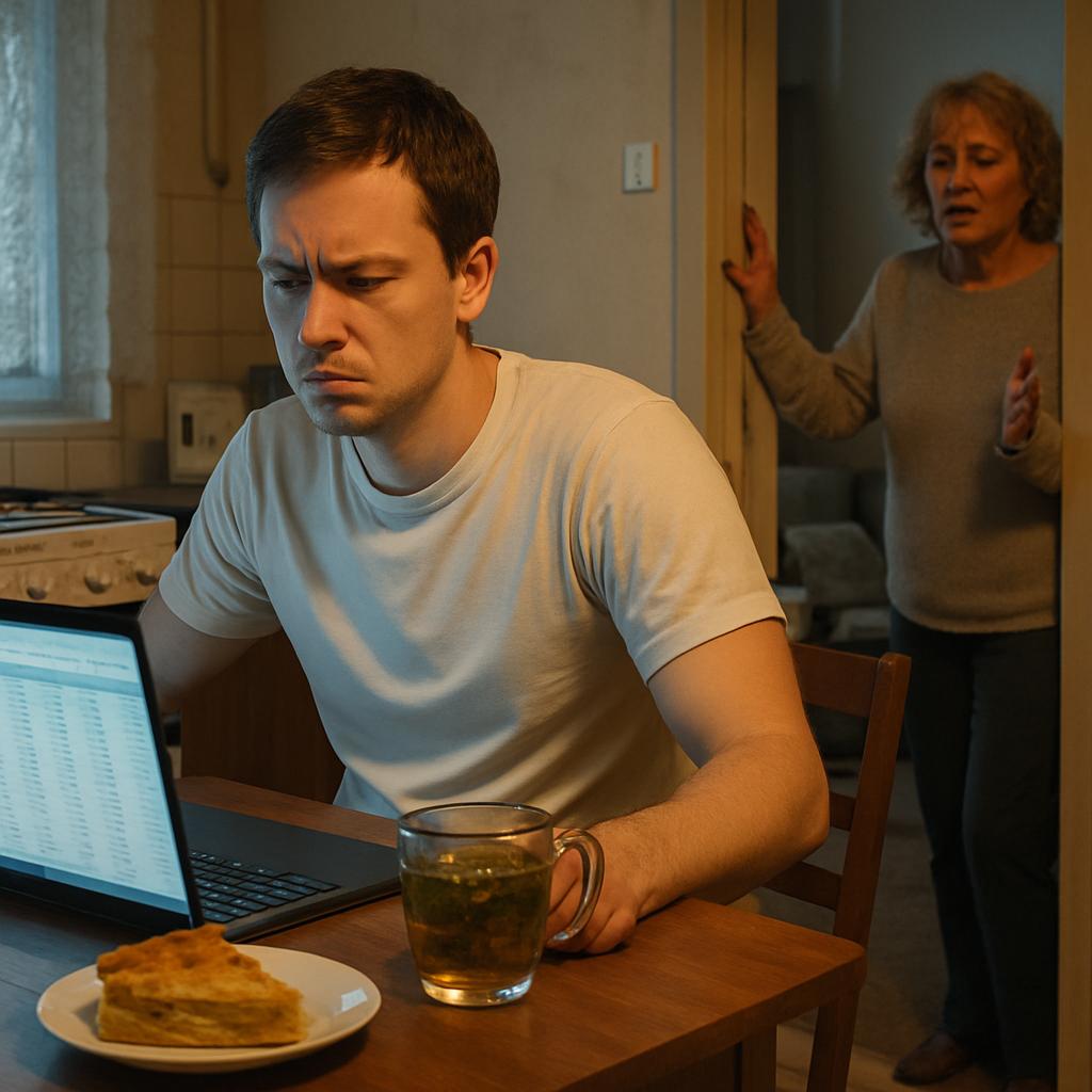 Богдан сидел за кухонным столом, уставившись в экран ноутбука. Перед глазами мелькали цифры — счета, таблицы, отчёты — всё сливалось в одно сплошное пятно.
