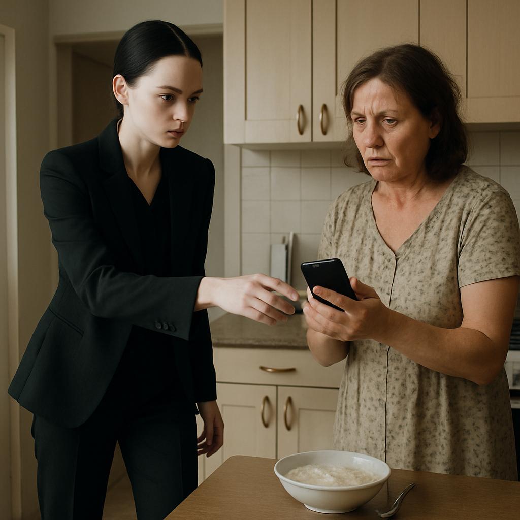 Оксана находилась на кухне. Перед ней стояла тарелка с парящей кашей, а рядом лежал новенький смартфон — подарок от Екатерины к недавнему юбилею. Женщина выглядела напряжённой и настороженной. Она заранее настроилась на выяснение отношений, накрутила себя мыслями и теперь только ждала повода, чтобы выплеснуть накопившееся раздражение.