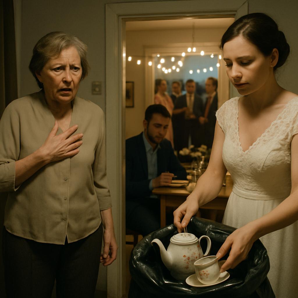 Звук разбившегося фарфора прозвучал, словно выстрел. Весь зал мгновенно замер. А Надя стояла и смотрела, как вся её жизнь — почти пять десятков лет забот и воспоминаний — рушится и исчезает в мусорном пакете.