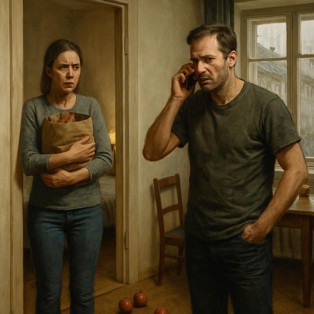 Пакет выскользнул из рук, и яблоки с глухим стуком покатились по паркету. В квартире воцарилась звенящая тишина. Богдан выглянул из спальни, заметил меня — на его лице на мгновение отразилось выражение человека, пойманного врасплох. Но уже через секунду он натянул привычную улыбку: