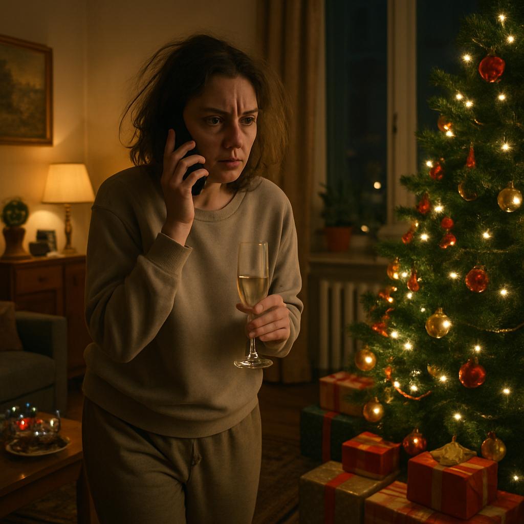 В руке по-прежнему был прохладный бокал с просекко, покрытый испариной, а взгляд упирался в нарядную елку с мерцающей серебристой гирляндой.